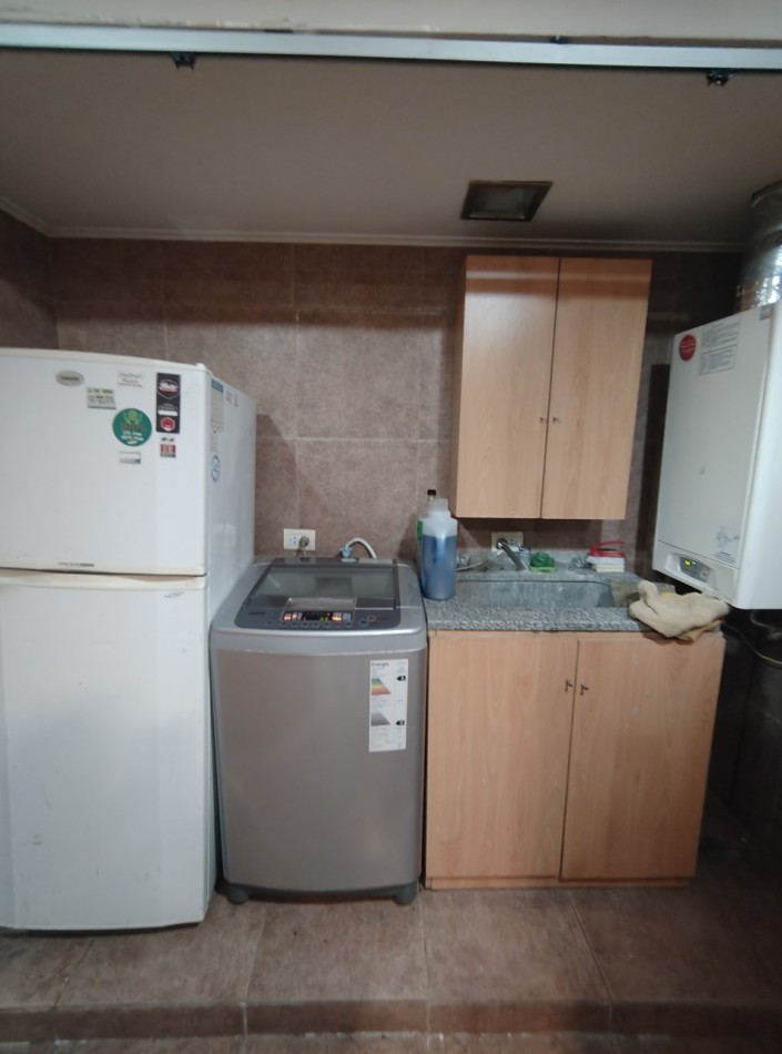 Garage cubierto para dos vehículos, con parrilla, espacio de quincho y lavadero integrado