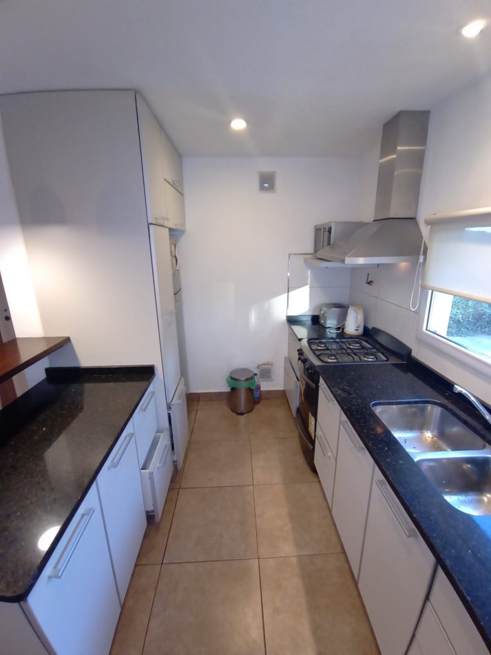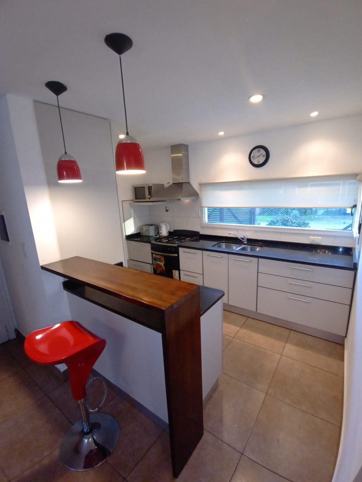 -La cocina cuenta con barra desayunadora y vista al frente.